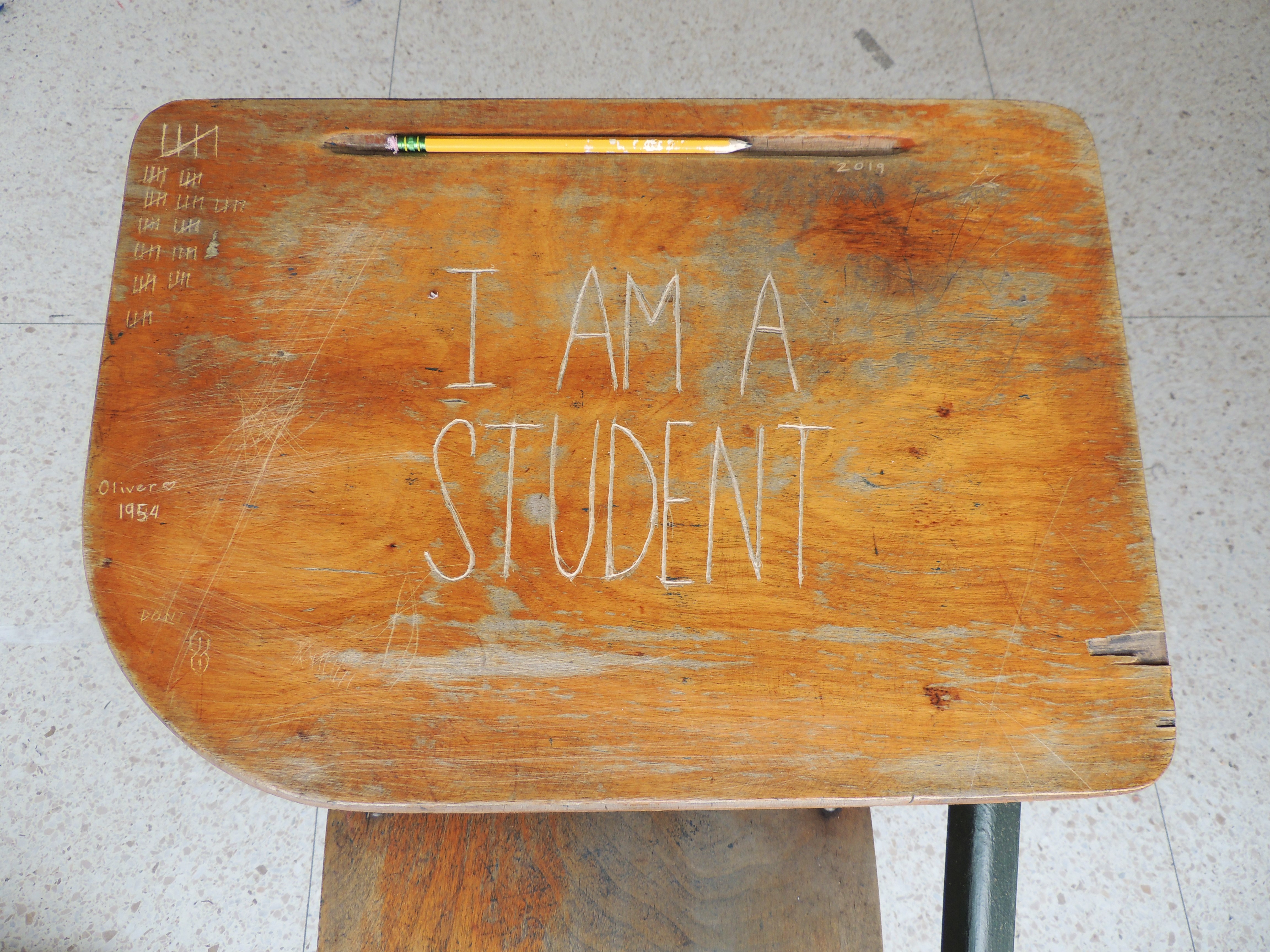 Stay Seated is a wooden desk sculpture installation that directly references historical events like Brown vs. Board of Education, the “I AM A MAN” protest signs from the Civil Rights Movement and more contemporary, the Individuals with Disabilities Education Act (IDEA). The American school systems are still highly segregated, and many schools are still underfunded. New or any resources are often scarce and of course most of these schools are filled with people of color. While IDEA brought new opportunities for people with mental disabilities, it also became a dumping ground for Africans Americans. Black students have been miseducated and neglected in American school systems for decades but instead of tackling that issues, we over identify them special needs. It has been 66 years since the Brown vs. Board trial and students of color are still treated less than their white counterparts. I AM A STUDENT.